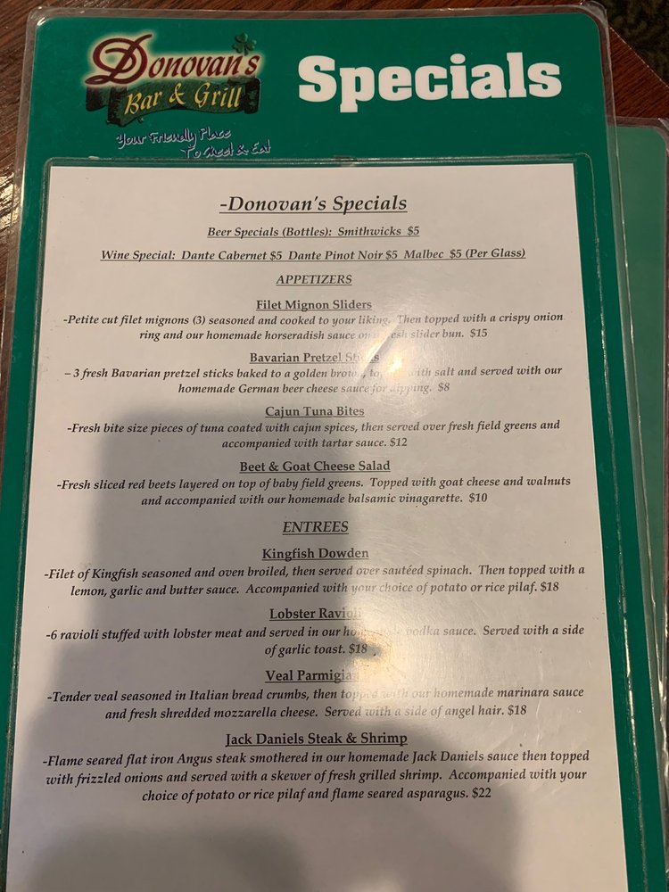 Donovan’s Bar and Grill in Manchester, NJ offers a vibrant atmosphere for casual dining with a range of amenities including outdoor seating, a full bar, and even a pool table. The menu caters to diverse tastes, with options like Blueberry Wine, Cheesecake wrapped in Filo dough, and generous portions that leave customers satisfied. Reviews rave about the fantastic service, delicious food, and friendly staff, making it a favorite spot for social gatherings or a quick bite. With a wide selection of dishes and a welcoming ambiance, Donovan’s Bar and Grill is a must-visit destination for those looking for a memorable dining experience in the area.